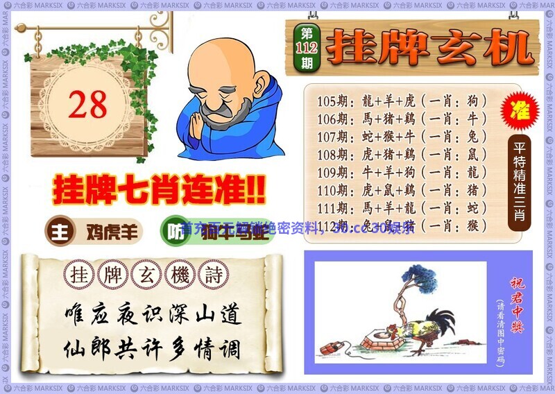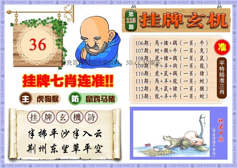 111期:港彩挂牌家野中特【家禽】开:马12中 |